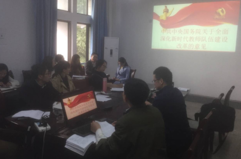 3月26日下午,能环学院环境系党支部组织系全体教师在能源楼316学习传达“中共中央国务院关于全面深化新时代教师队伍建设改革的意见”。会议由系支部书记江用彬主持。根据校、院党委精神,支部带领全体党员学习“意见”内容,深刻认识“意见”中指出的教师队伍建设的重要意义和总体要求,深入领会“意见”中关于坚持社会主义办学方向,落实立德树人根本任务的指导思想。支部要求支部和系班子要在今后的工作过程中加强师德师风建设,党员教师要带头树立以德育人的榜样,要求全体教师以“四有好教师”为标准,弘扬高尚师德。学习后大家集体讨论,教师们一致认为要在今后的工作过程中不断提高自己,要做一个党和人民满意的高素质、专业化、创新型的教师。
