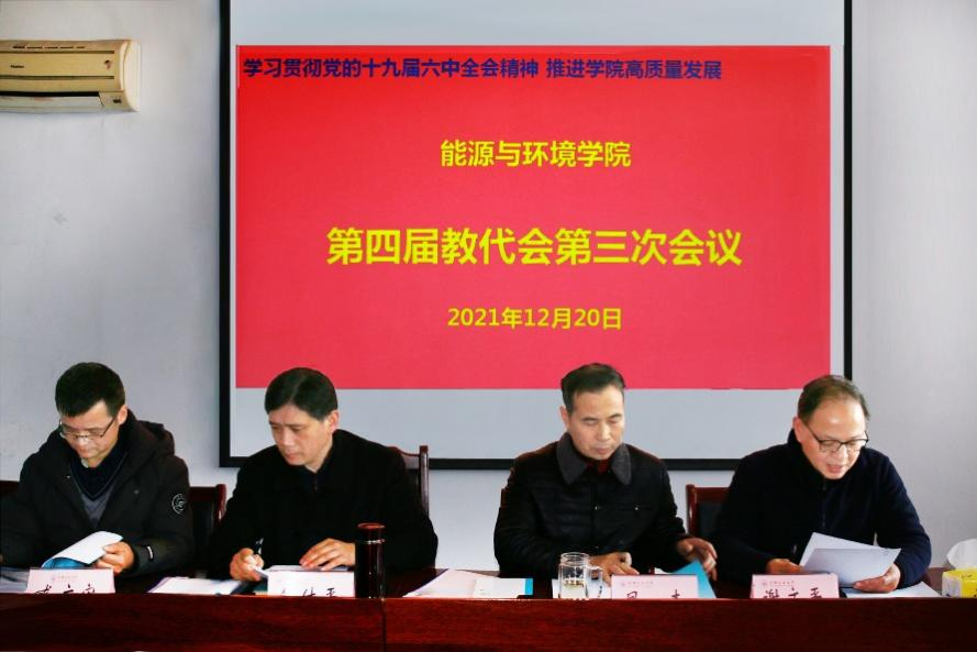 四届三次教代会在能源楼325召开。大会主题“学习贯彻党的十九届六中全会精神 推进学院高质量发展”。大会由学院党委副书记、副院长谢文平主持。