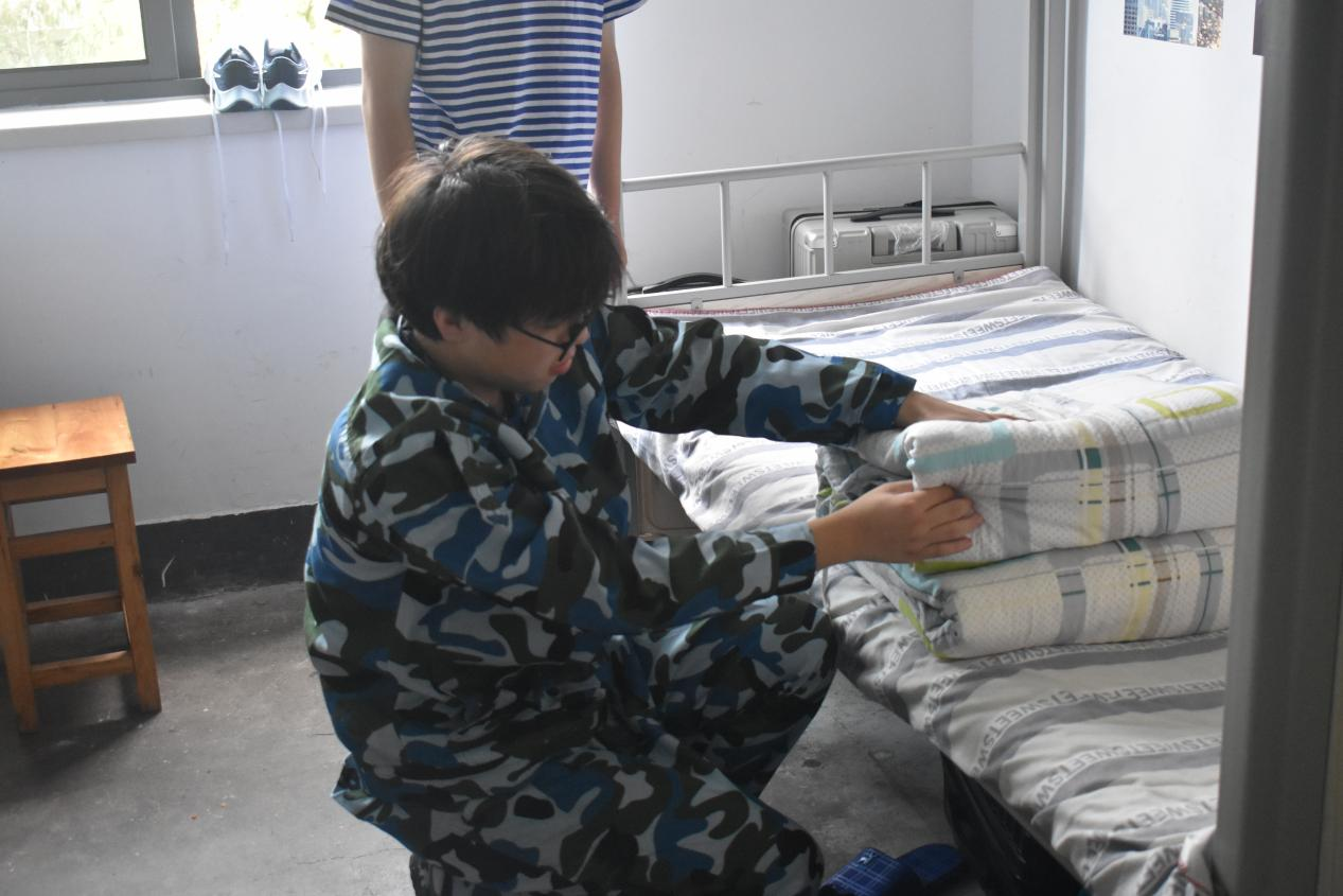 “出门看队伍,进门看内务”,过硬的作风不仅是在训练场上挥汗如雨,也包括生活中的规范统一。教官们按照军队宿舍内务整理的要求和标准,亲自讲解和演示了被褥叠放和床铺整理,并对生活物品摆放、宿舍地面清扫等细节方面提出了要求。观摩学习后,同学们纷纷动手整理宿舍内务,经过大家的共同努力,寝室面貌焕然一新。