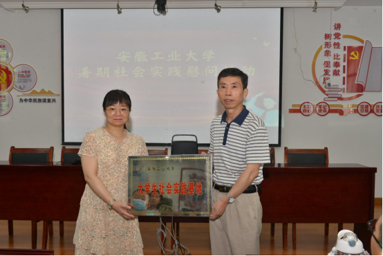 水恒福对参加活动的社会实践队员们提出来希望和要求,希望他们弘扬“红色文化”,讲好“红色课堂”。勉励他们珍惜机会,在实践中激发潜能,学以致用,在今后的学习生活中担当奉献,自觉听从党和人民召唤,践行“请党放心,强国有我”的承诺。水恒福还为大学生社会实践基地揭牌并为实践队员们发放了慰问品。