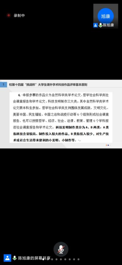 利用腾讯会议形式于线上举行了“挑战杯”大学生课外学术科技作赛启动仪式。启动仪式邀请了参赛经验丰富的陈旭康同学进行参赛经验宣讲培训,能环学院参赛同学、各班班委参加了培训。能环学院副院长盛广宏、院团委书记钱春梅出席启动仪式。