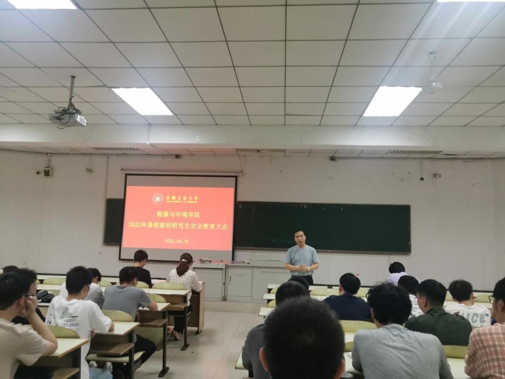 副院长楚化强从研究生假期留校如何从事科研、撰写论文和加强暑期留校学生安全责任管理等角度出发,对留校研究生进行了详细安排和教育。他强调,研究生要利用暑假积极参与导师的相关科研项目,积极撰写论文,牢固树立安全意识,认真履行假期留校自律承诺,严格遵守校规校纪。同时,研究生辅导员苗老师对于留校学生的请销假、交通安全、用电安全、防电信诈骗等问题进行了重点强调,要求暑期留校研究生在校遇到生活、工作等问题及时汇报、沟通,确保在校研究生的生活及科研工作安全顺利。