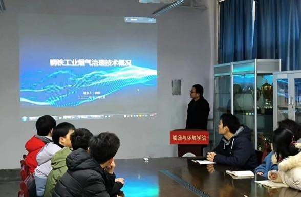 师生作了题为“钢铁工业烟气治理技术概况”的学术报告。报告由能环学院环境系主任贾勇主持,环境系教师、研究生及部分本科生聆听了报告。