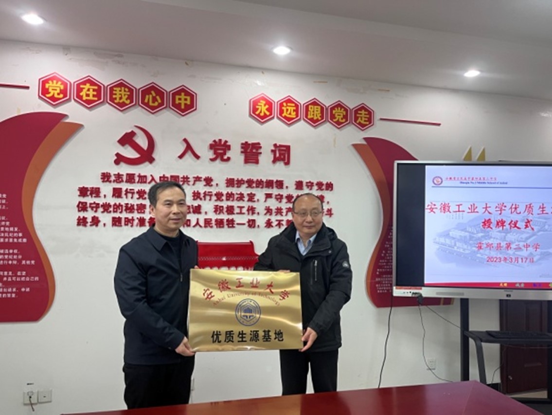 的建校历史、学科专业建设、人才培养、人工智能—英才班、创新及就业、学生资助、硕士博士学位点建设等方面进行了介绍。钱付平还向六安二中送达优秀学子喜报和招生宣传手册,双方进行合影留念。