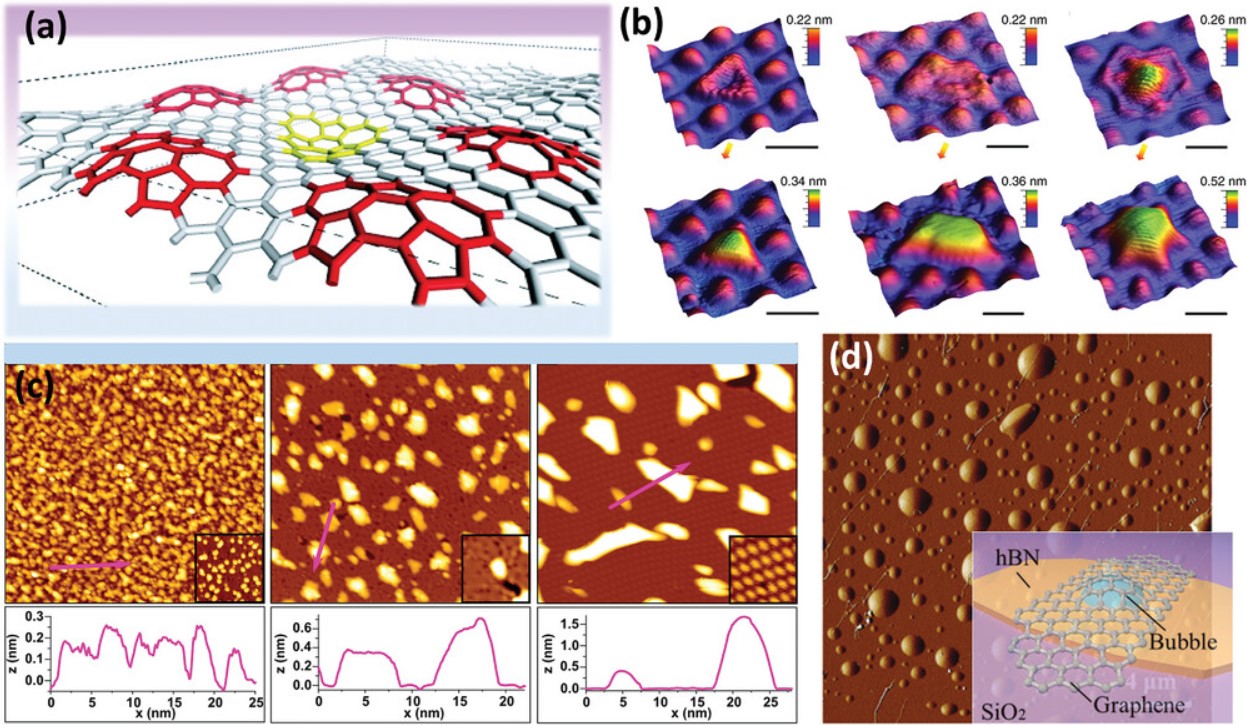 (由阴离子插层引起的石墨表面气泡现象AFM和SEM图)