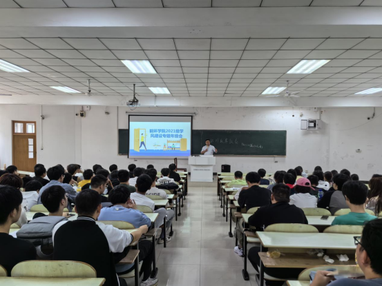 于10月19日中午在教三南103教室举行了学风建设专题年级会暨考研动员大会,院党委副书记、副院长卫军帅作动员讲话,2021级全体本科生参与了本次会议。会议由辅导员黄乐远主持。