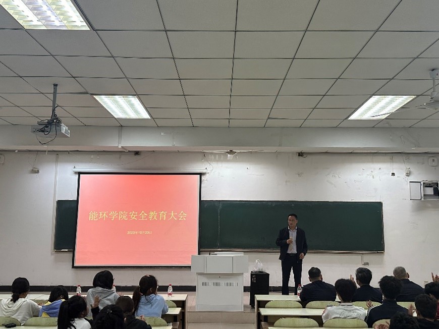 于10月23日下午在教三南103召开安全教育大会,由花山区消防大队杜贤明讲师和花山区反诈中心王勇主任进行讲解与指导。校安保部部长包恒庆、湖东路派出所所长王小飞等出席会议,会议由能环学院党委副书记、副院长卫军帅主持。全院师生代表近400人参会。