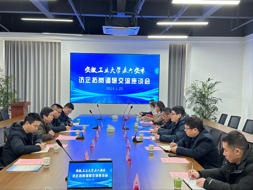 1月22日下午,水恒福一行与六安市人社局、多家制造企业开展访企拓岗调研交流座谈会。六安市人力资源和社会保障局副局长李小天对安工大一行的到来表示热烈的欢迎。座谈会上,水恒福介绍了博彩