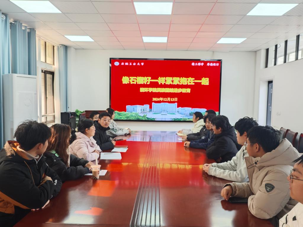 于12月13日在能源楼325开展民族团结进步教育座谈会。会议由学院辅导员吴飞、范浩东主持,2024级各民族学生代表参会。