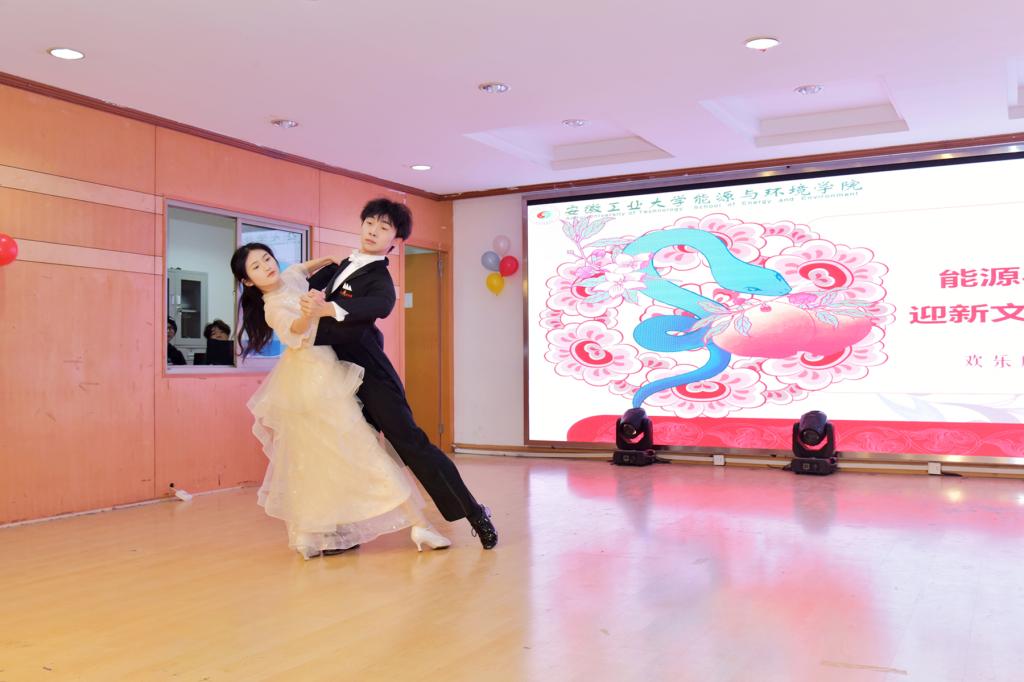 联欢会上,同学们奉献了用心精彩的演绎,节目涉及说唱、乐器演奏、舞台剧、舞蹈和合唱等多种形式。一曲《兰亭序》让同学们感受到传统乐器的无限魅力,舞台剧《满江红》展现了新时代青年对爱党爱国的深刻理解,华尔兹和探戈的舞蹈演绎点燃了全场热烈的气氛,最后《博彩