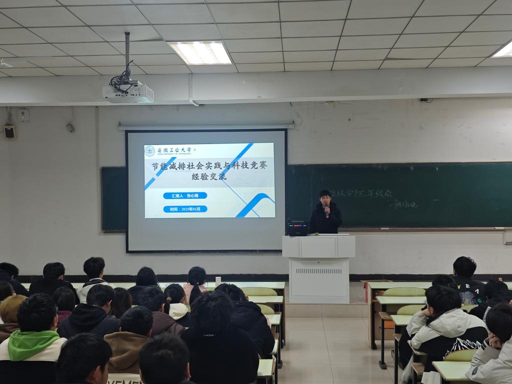 为进一步激发学生参与科技竞赛的兴趣,更好地以赛促学,2月27日,能环学院在阶教103教室开展节能减排社会实践与科技竞赛经验分享交流会。会议由学院团委副书记、2024级辅导员范浩东主持,2021级学生张心雨主讲,大一全体同学参与。