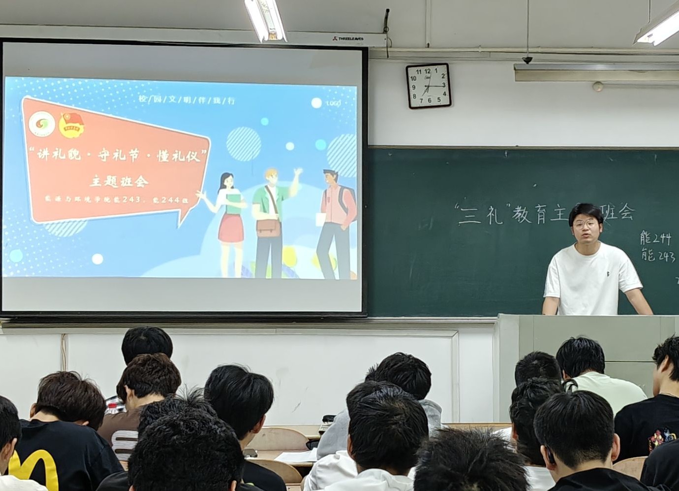 于4月15日至5月7日组织各班级开展了以“讲礼貌 守礼节 懂礼仪”为主题的班会活动。本次活动覆盖全院所有班级,参与率达100%,取得了良好的成效。
