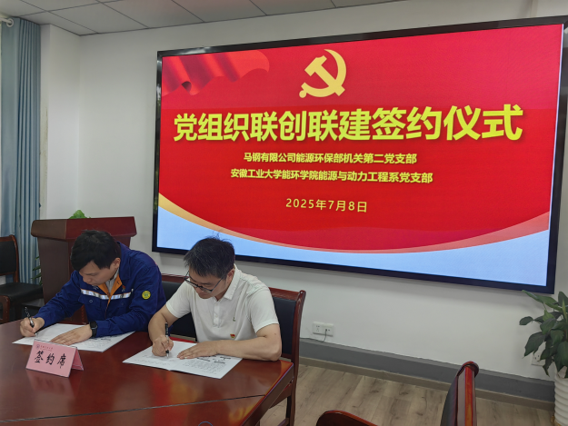 能源与动力工程系党支部与马钢有限公司能源环保部机关第二党支部举行联创联建签约仪式。学院党委书记谢文平,马钢有限公司能源环保部党委书记、副部长章连生,两个签约支部的支委及党员骨干出席签约仪式。仪式由马钢有限公司能源环保部机关第二党支部支部书记王思丞主持。