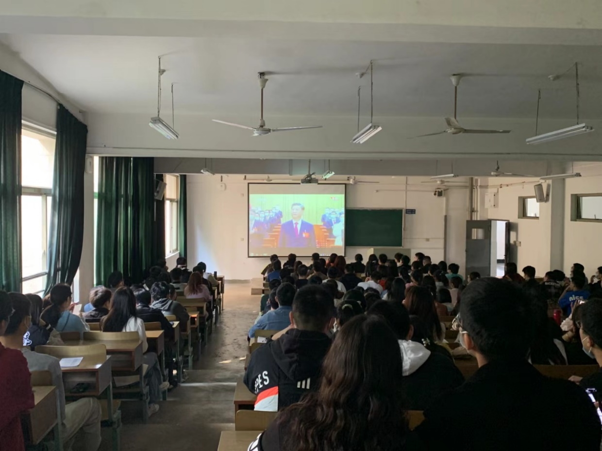 能环学院组织学生党员和普通同学线上、线下观看学习党的二十大开幕会直播,认真聆听习近平同志代表十九届中央委员会向大会所做的工作报告。