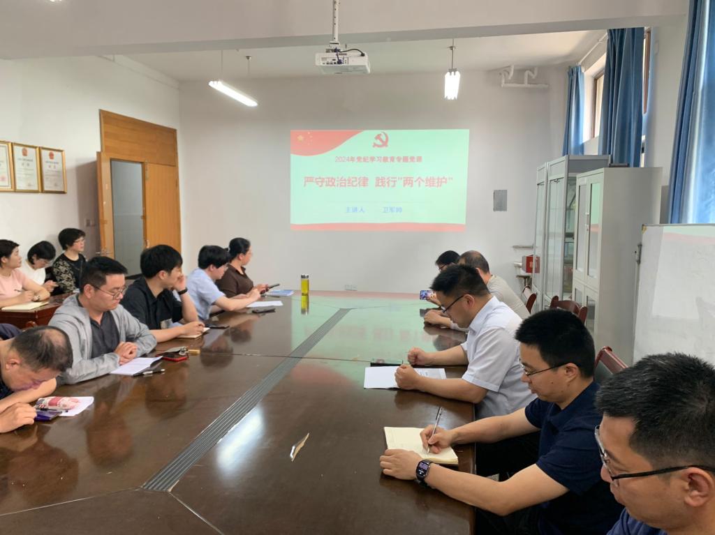 为深入学习贯彻习近平总书记关于党纪学习教育的重要讲话和重要指示精神,5月20日下午,能环学院党委副书记卫军帅以“严守政治纪律,践行‘两个维护’”为题,在能源楼307会议室给能源与动力工程系党支部讲授《中国共产党纪律处分条例》专题党课。能源与动力工程系、新能源科学与工程系全体教师聆听了专题党课。