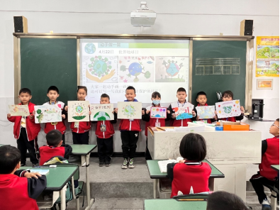 课程结束后,孩子们拿出画笔,化身保护地球的“创作者”,描绘自己想象中生机勃勃的地球。一年级6班的陈怡萱说:“听了熊学长的分享,我以后扔垃圾一定注意分类,还要绿色低碳出行,让地球妈妈一直保持‘蓝天白云’‘绿水青山’的美丽!”