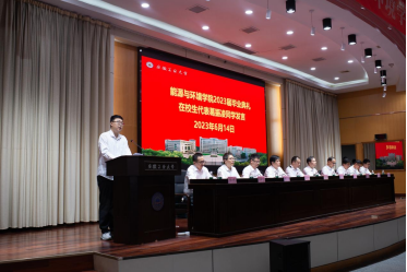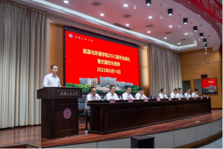 在今年279名本科毕业生中,有93人被推免保送或考取北京大学等国内“双一流”高校攻读硕士研究生,考研录取率居全校前列;涌现出校“十佳班级”能源与动力工程191班等一批先进集体和校2023年“大学生自强之星”第一名获得者、校“十佳大学生”余锦仁等一批优秀学生典型个人。这些成绩展示了能环学子努力拼搏的精神风貌和学院良好的育人成效,他勉励大家百尺竿头,更进一步,用不懈奋斗创造新的辉煌。作为师长,他向同学们提出三点希望。第一、希望大家坚持梦想,做敢于担当、永不言弃的人;第二、希望大家不断学习,做追求真理、勤于实践的人;第三、希望大家不懈奋斗,做砥砺奋进、开拓创新的人。
