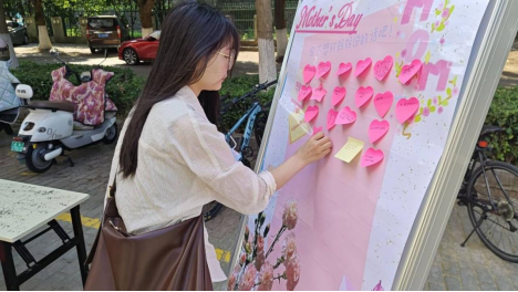同学当场拨通自己母亲的电话,说出那一句句“妈妈我爱你”,“您辛苦了”,现场洋溢着温暖与感动。活动现场设置“感恩留言墙”,参与者签到后纷纷写下对母亲的暖心话语,百余条留言承载着对母亲的爱意。